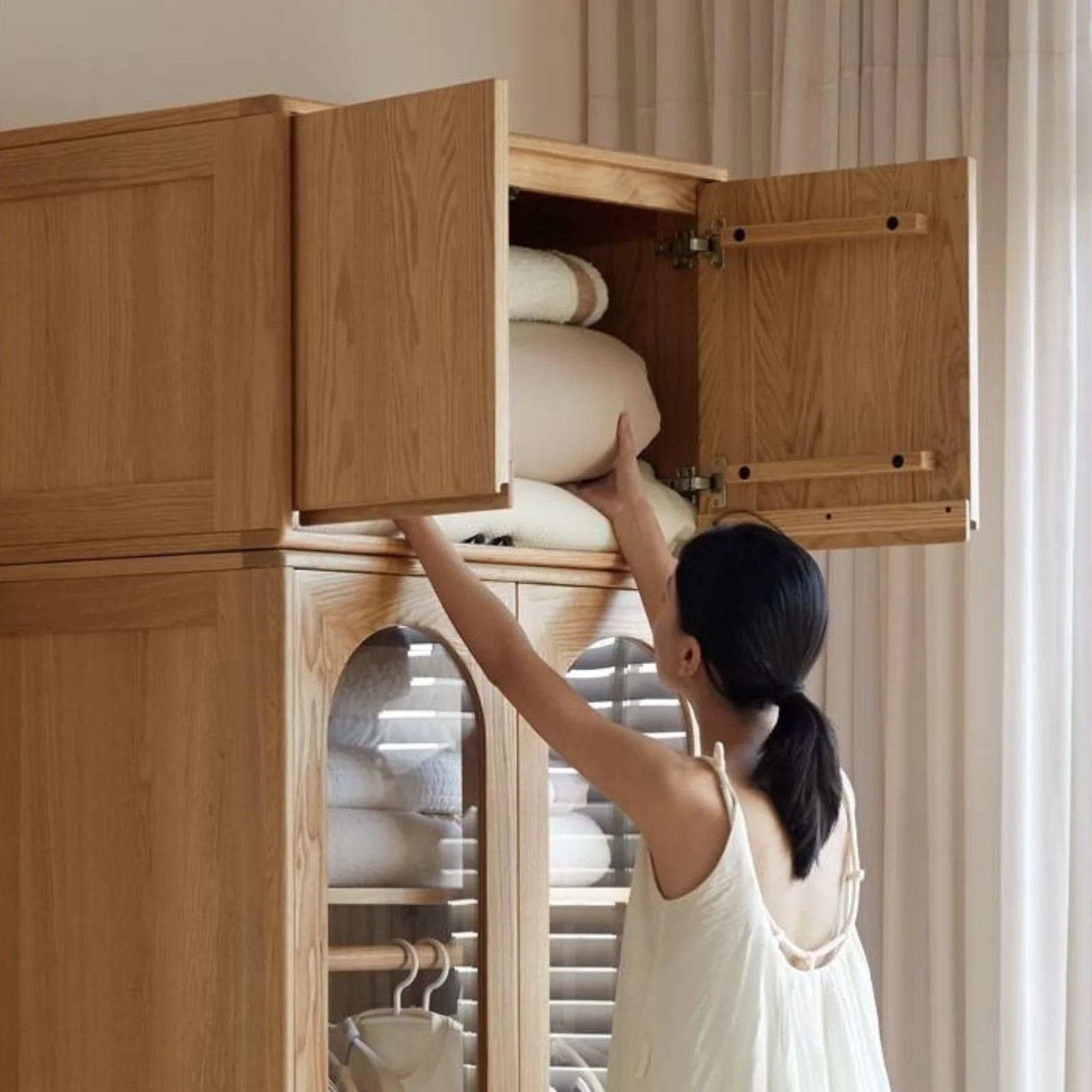 مصممة بعناية مع مراعاة البيئة، تم بناء خزانة الملابس المصنوعة من خشب البلوط من موارد مستدامة، مما يضمن مساهمتها الإيجابية في منزلك والكوكب.