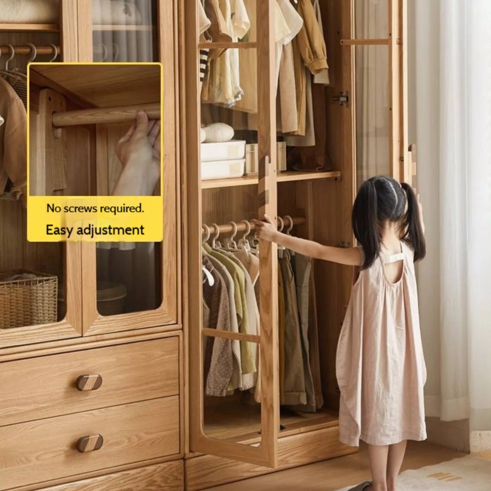 ارتقِ بغرفة طفلك مع خزانة ملابس الأطفال ذات النمط الخشبي الأصلي المصنوعة من خشب البلوط - مزيج مثالي من الأناقة والاستدامة والوظيفية.