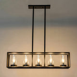 Black Metal Frame 5-Light Kitchen Island Linear Pendant Light Modern Style