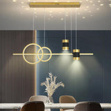 Modern Gold Linear Crystal Kitchen Island Light Metal Geometric Pendant Light - Gold