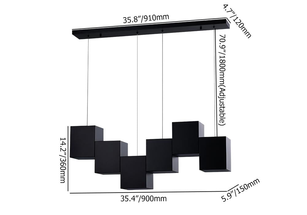 Modern Linear Black Kitchen Island Light 6-Light Square Pendant Light
