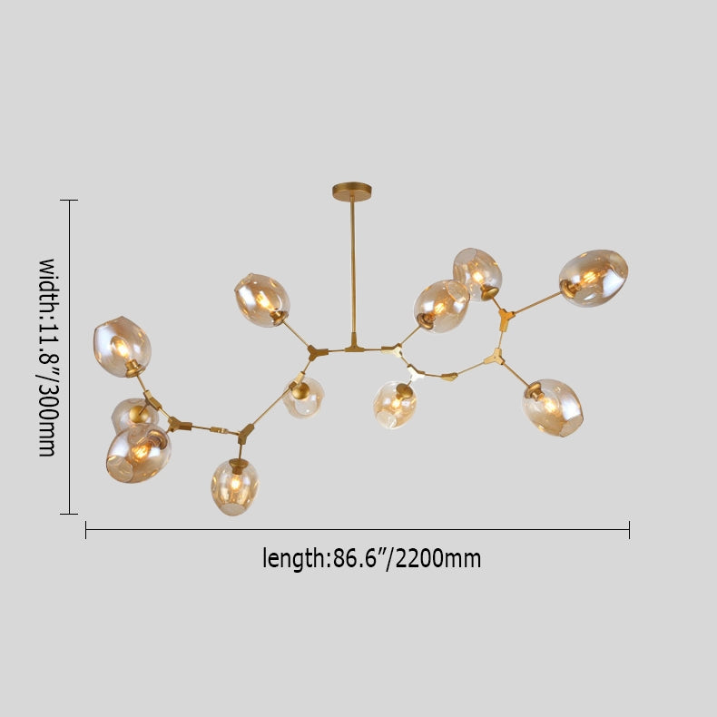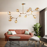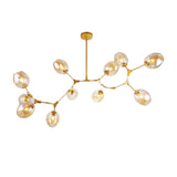 Modern Minimalist Tree Branch Amber Glass Globe Shade Adjustable 11-Light Large Pendant Light Metal in Gold