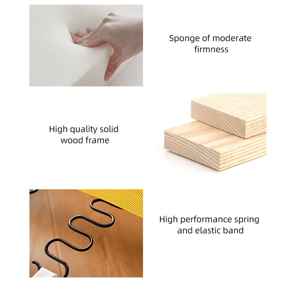 WEHOMZ Beige Linen Fabric 3-Seater Sofa with Solid Wood Frame & Japandi Style for Modern Living Rooms - Burlywood Color Frame