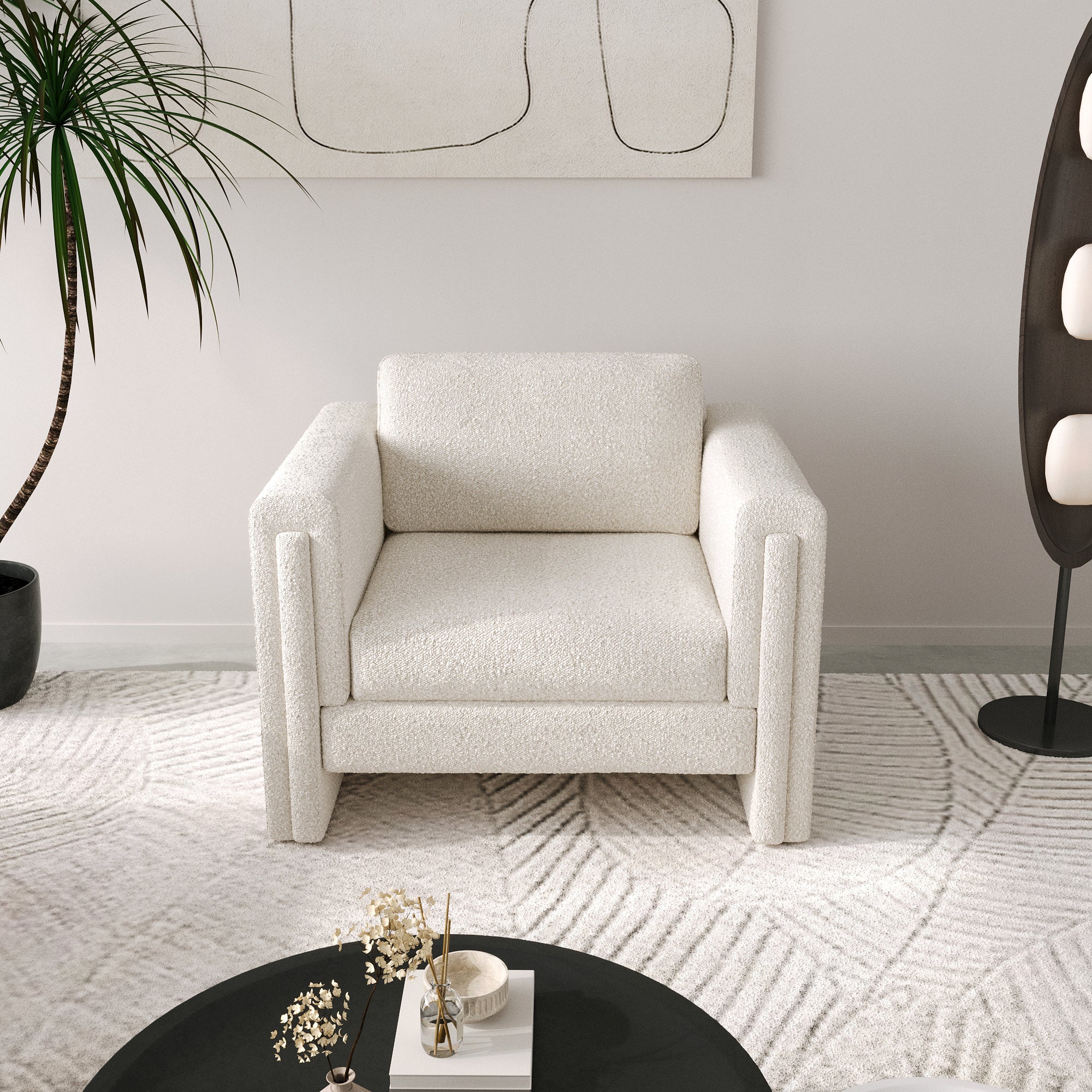 Modern Upholstered Armchair - Available in Teddy Velvet & Cotton Linen Blend, Ivory White or Classic Black
