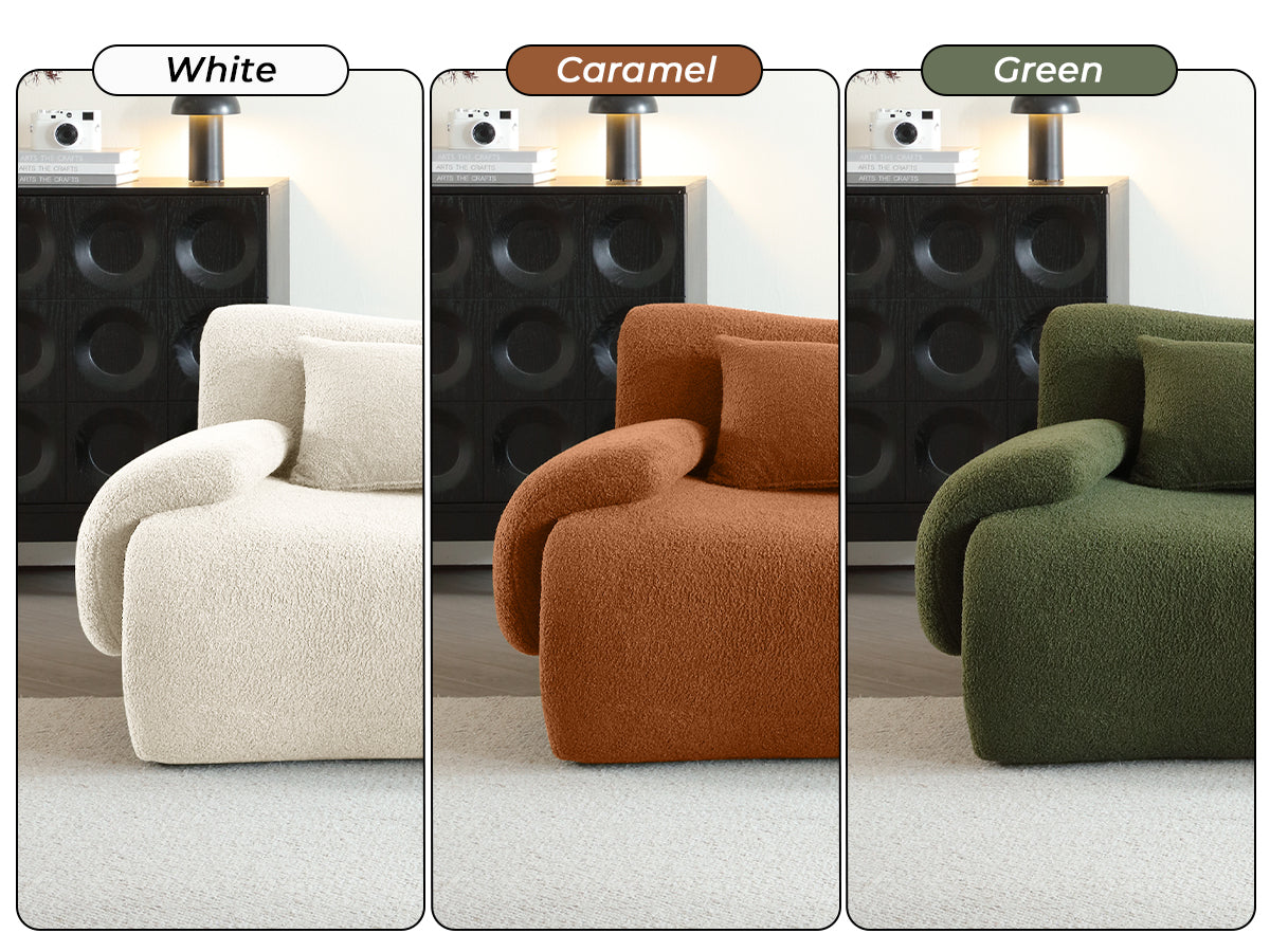 Available in three charming colors - pristine White, vibrant Green, and rich Caramel - this sofa offers you the choice to pick what best suits your existing decor. Setup is straightforward with no assembly required; simply arrange the sections to your preference, plump the cushions by patting them, and enjoy the transformative effect it has on your space. Please note, slight color variances may occur due to different monitor settings and lighting conditions during photoshoots.