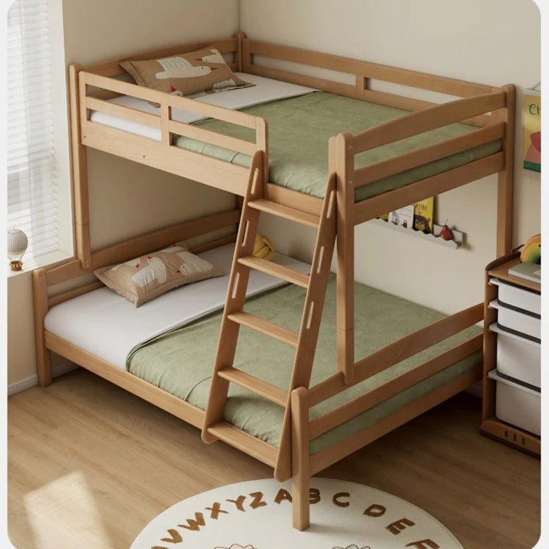Crafted from 100% pure solid European Beech wood, our bunk bed boasts a plant-based wood wax oil coating that is not only environmentally friendly but also safe for your children, as it contains no harmful synthetic ingredients. This natural finish gives the bed a clean taste and an aesthetic appeal that fits seamlessly into any child's room.