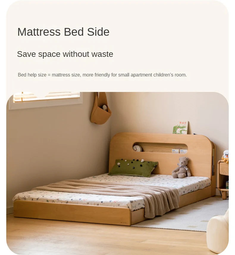 Beech solid wood kids bed - Natural Wood Color Beech Children's bed (head height 74.5cm)
