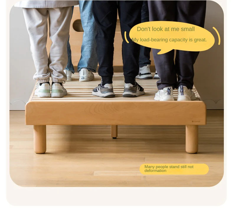 Oak solid wood Multi-function wide storage box bed< - Natural Wood Color Half-height storage bed without small step ladder