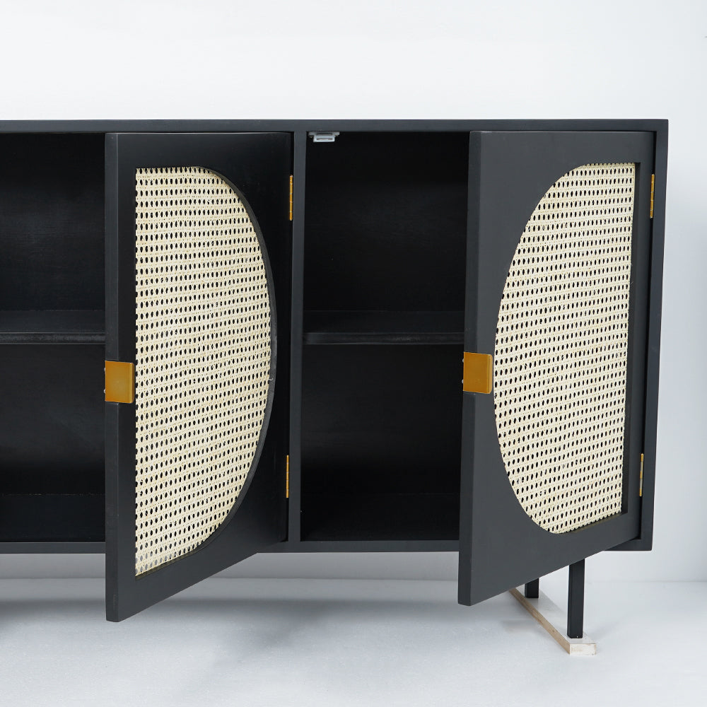 63" rechteckiges schwarzes Rattan Sideboard Buffet 3 Türen Lagerschrank Sperrholz