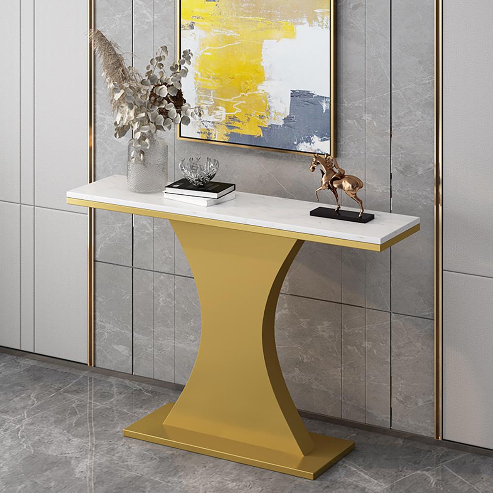 Dieser moderne Konsolentisch mit Marmorplatte und Metallrahmen bringt Ihre Wohnkultur auf die nächste Stufe. Obwohl es als dekoratives Stück für jeden Raum schön ist, ist es ein idealer Ort zum Ausruhen für die wesentlichen Gegenstände, die Sie suchen, um das Haus zu verlassen oder hineinzugehen. Mit seinen klaren Linien und seinem offenen Stil passt der rechteckige Couchtisch perfekt zum zeitgenössischen Stil.