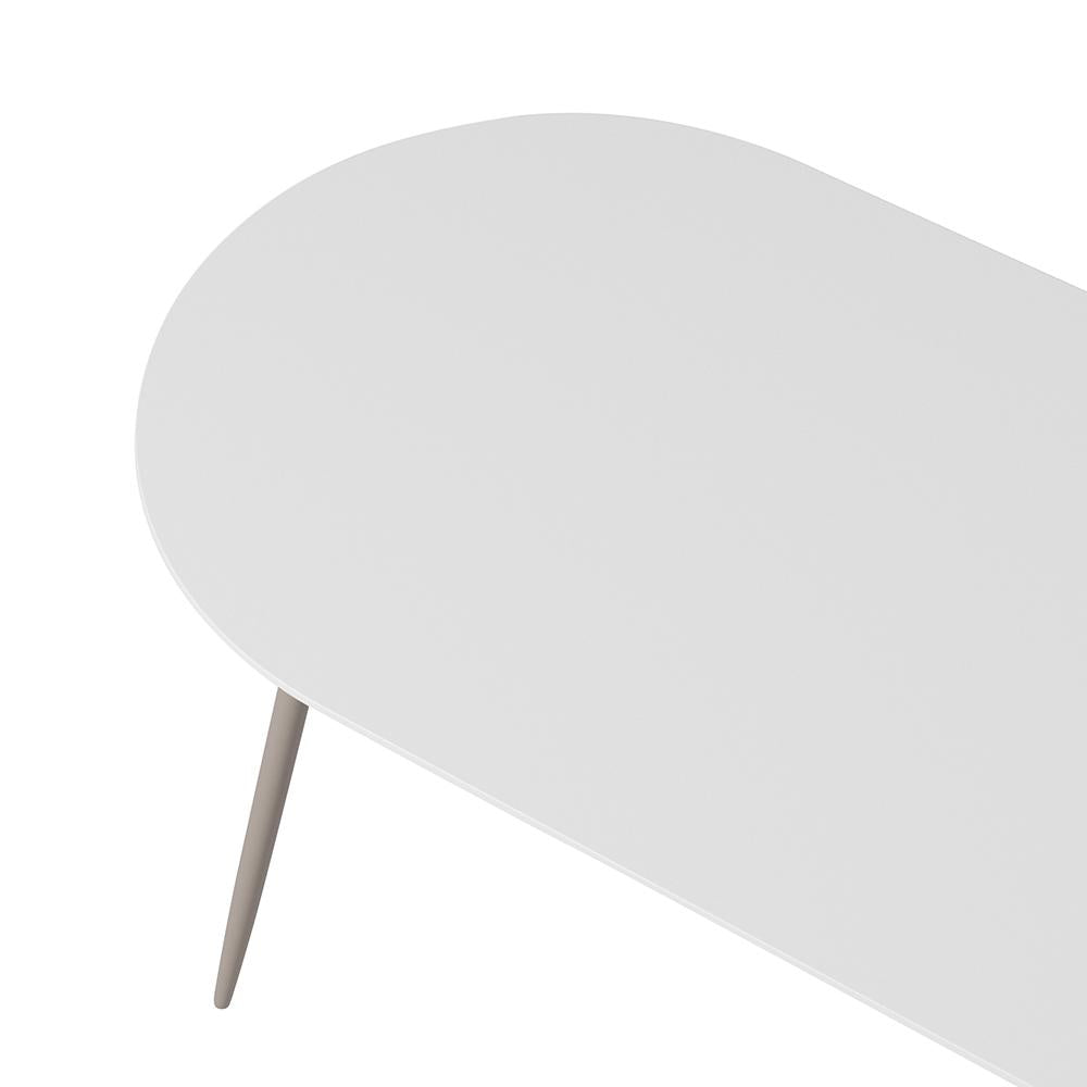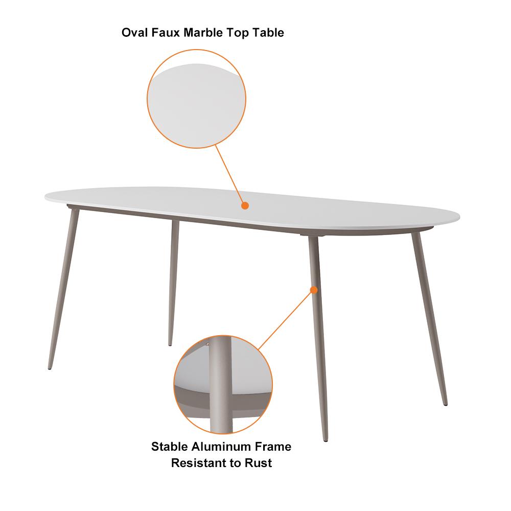 Esstisch für 6 Personen, ovale Kunstmarmorplatte und Aluminium-Terrassentisch in Weiß und Grau