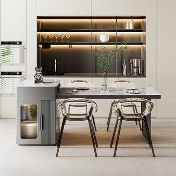 Verbessern Sie Ihren Essbereich mit einem Hauch von moderner Eleganz und vielseitiger Funktionalität durch unseren ausziehbaren Marmor-Esstisch. Entworfen, um Stil und Praktikabilität nahtlos zu verbinden, ist dieser Tisch ideal für intime Familiendinner oder große Zusammenkünfte und bietet komfortabel Platz für...