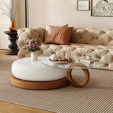 WEHOMZ Modern Round Coffee Table with Glass Top & Dual-Tier Solid Wood Base
