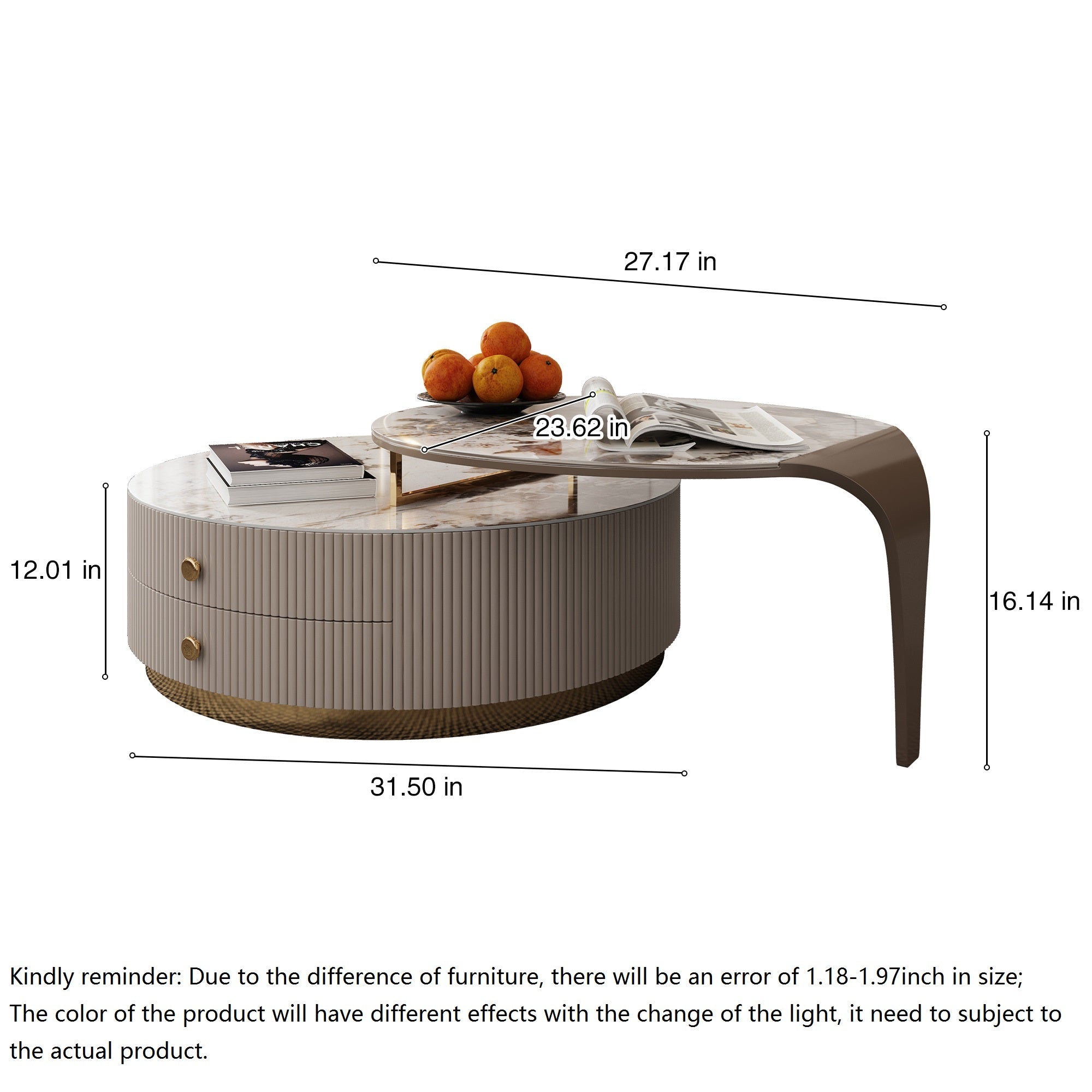 WEHOMZ 2-Piece Modern Round Coffee Table Set with Marble Top, 2 Drawers & Metal Legs