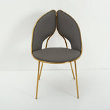 Modern Dining Chair PU Leather Upholstered Stainless Steel Gold Finish Chair Set of 2