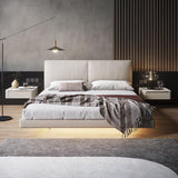 12" Champagne Modern Narrow Bedside Table - Wood with Lighted Drawers & Wireless Charging - Champagne