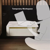 Modern White Floating Nightstand 1 Drawer Bedside Table with Sintered02Stone Top