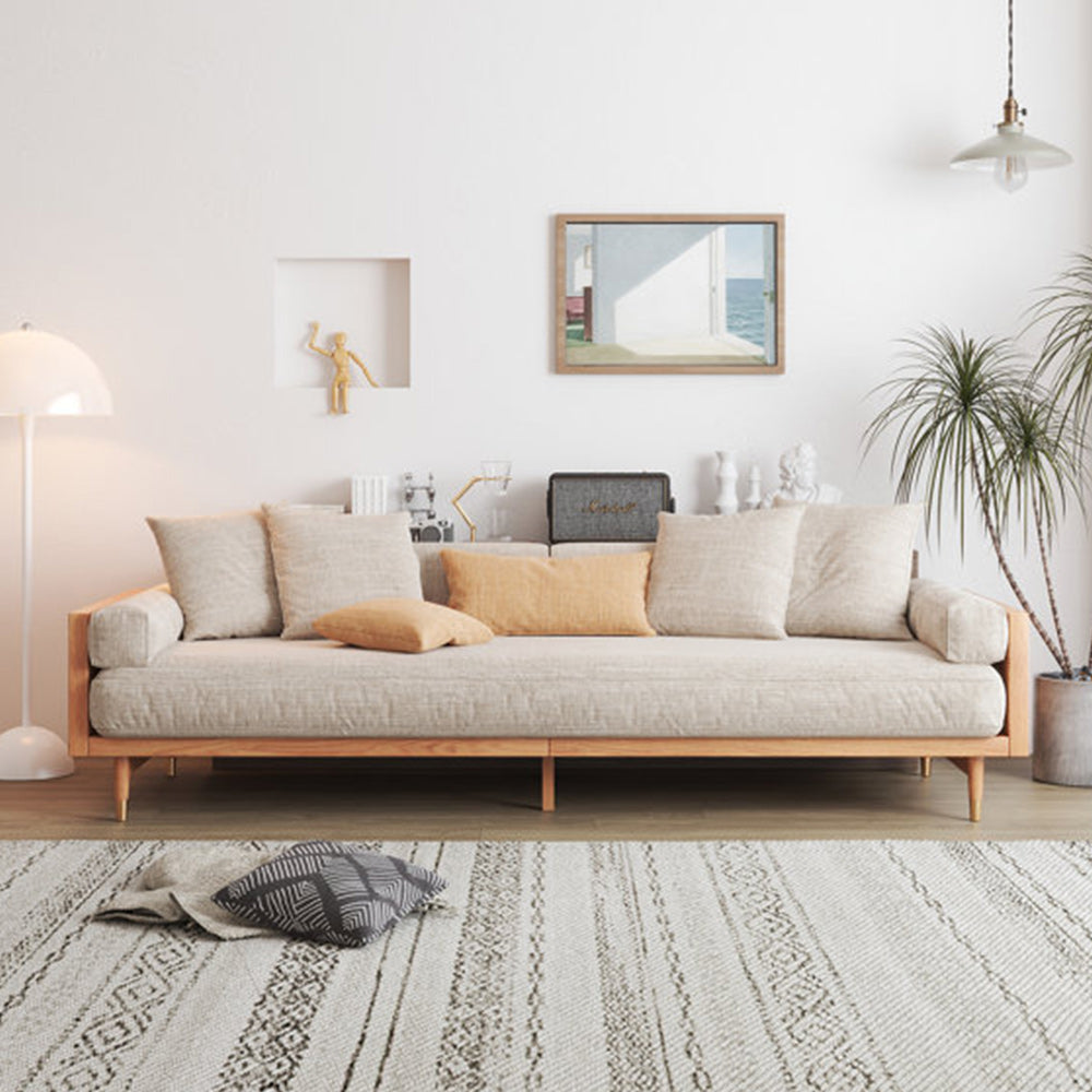 Cotton Linen Beige Sofa with Underseat Storage & Solid Wood Frame - Beige
