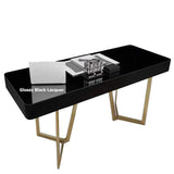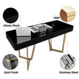 47" Glossy White Writing Desk with Drawer Modern Office Desk Gold Base - White