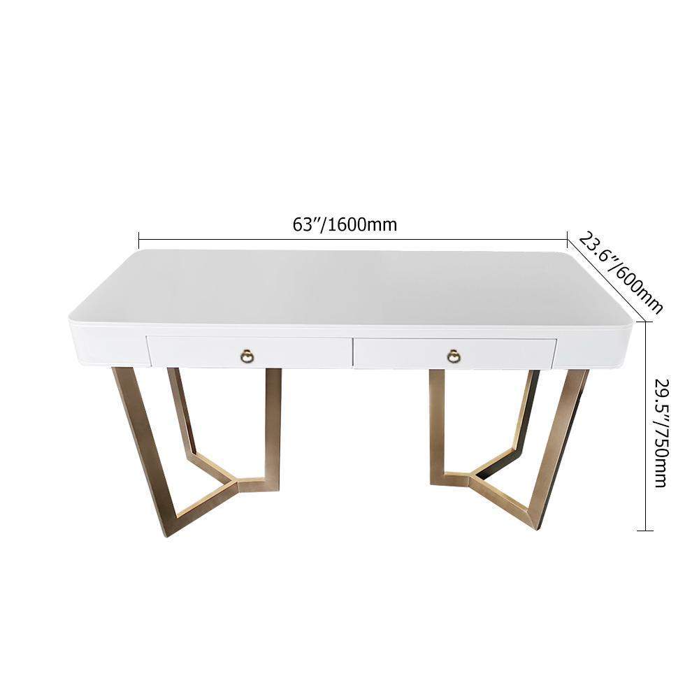 2-Drawers White Office Desk 55" Modern Writing Desk Gold Tripod Base Stainless Steel