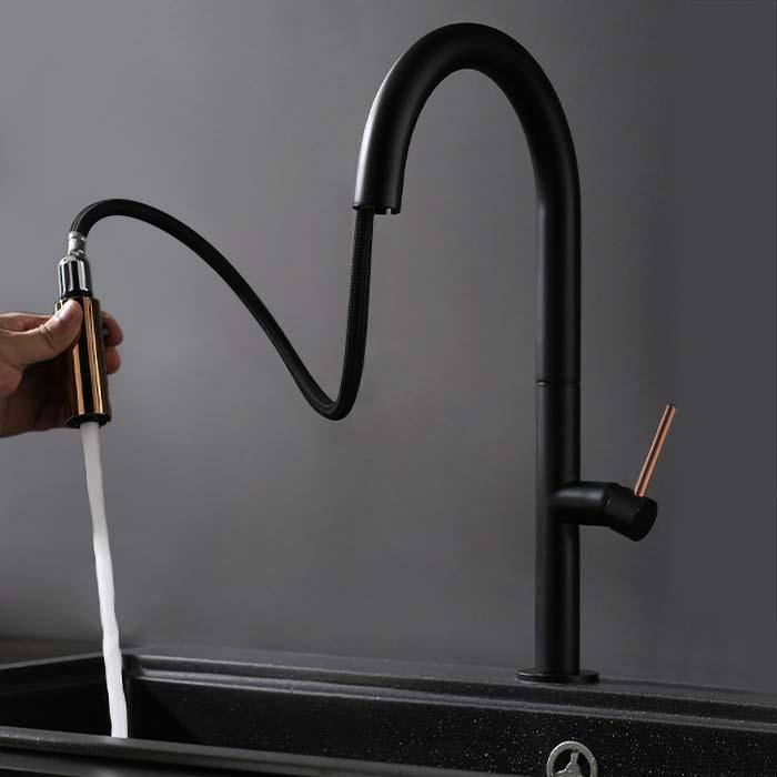 Simple Touch Pull Down Kitchen Faucet with Double Function Single Handle Black & Gold