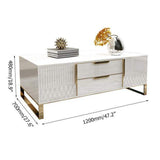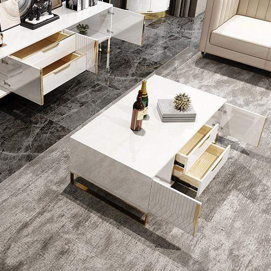 White Rectangular Coffee Table with Storage of Drawers & Doors in Gold
