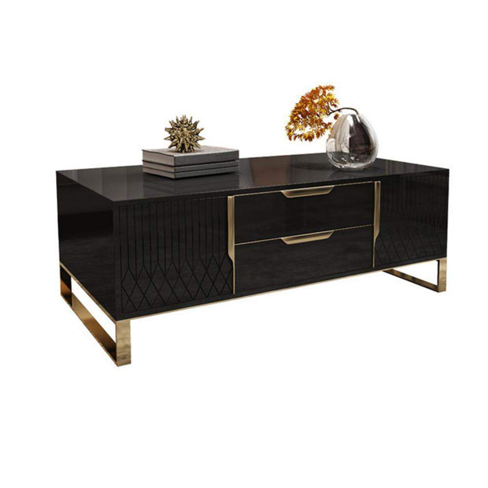 Spice up your living room with this modern stylish coffee table. Adorned by a gold finish, it strikes a square clean-lined silhouette to take your decor to the next level in charm. Otherwise, four large drawers offer plenty of space...