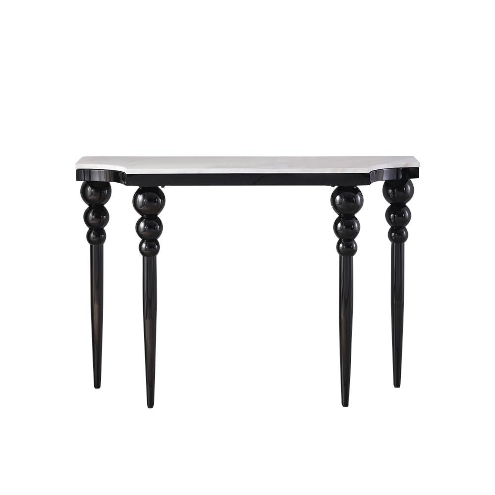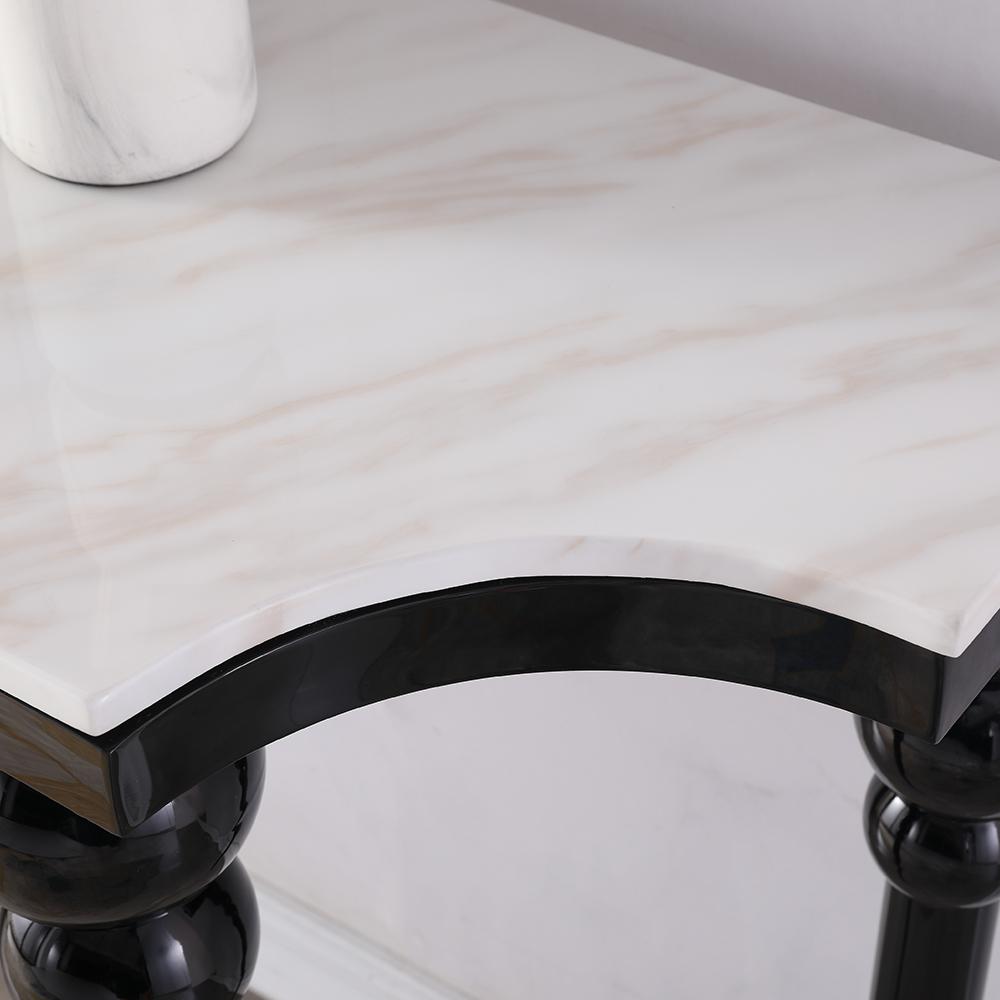 This artsy and elegant console table offers a fresh appearance to the living room with ornamentation. This high-end entryway console table combines a glossy black freeform top and geometric base to produce an exciting taste and good-looking appearance, which is classic yet stylish. This console table will bring any area up to date. The smooth marble surface gives treasured framed family photographs, potted plants, and creative accessories. It is a superb solution to finish any environment with a modern touch. Both elegant and useful, this entrance table must be a lovely addition to your home.