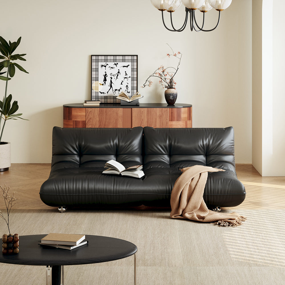 Premium Materials for Unmatched Durability: Crafted with eco-friendly genuine leather in a classic black hue, this sofa bed offers easy maintenance and resistance to wear. A solid internal frame constructed from pine wood supports the durability of the design while high-density foam ensures a firm yet comfortable sitting or sleeping experience.