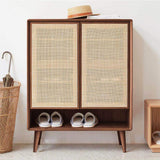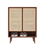 Farmhouse Natural Shoe Storage Cabinet Rattan 2 Doors & 4 Shelves Entryway Shoe Cabinet