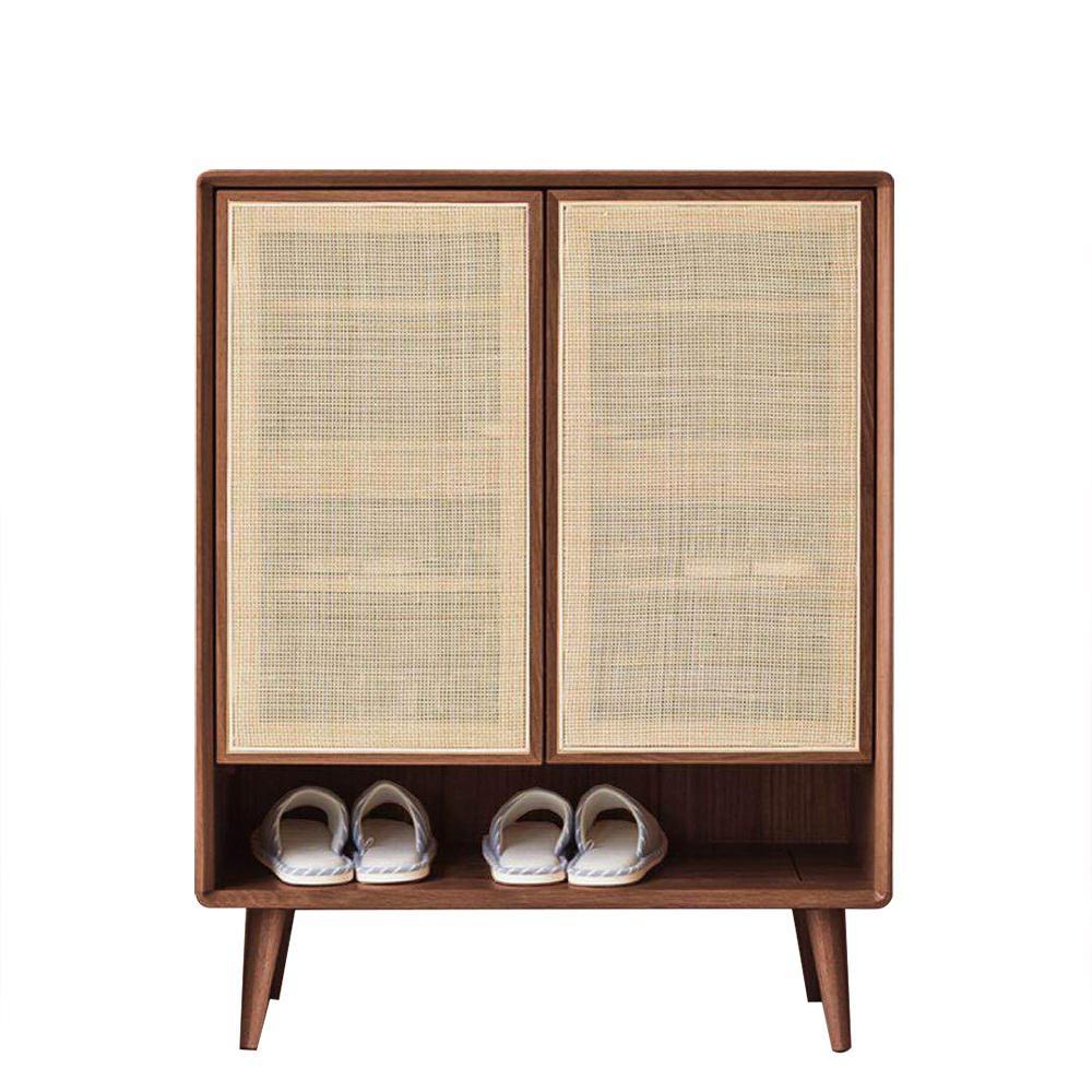 A beautiful blend of Farmhouse style and modern practicality, the shoe cabinet can elevate any home. 2 doors and 4 shelves offers you ample space to organize the shoes up to 15 pairs. Rattan woven design lets this item be well-ventilated and gentle. Premium rattan and solid wood frame ensure sturdy support. Fantastic utility, along with a unique and eye-catching aesthetic, distinguishes the shoe cabinet as an exceptional addition to any entryway.