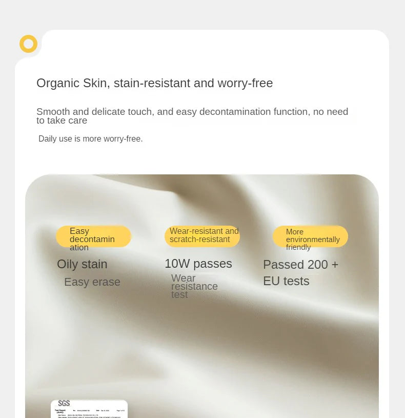The organic leather upholstery is not only skin-friendly but also wear-resistant and easy to clean, allowing you to tackle spills and stains without worry. Maintain daily use with minimal effort, providing parents with convenience and freedom.