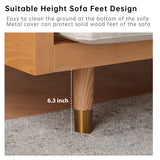The sofa's dimensions are crafted to ensure it fits seamlessly into both spacious and compact areas, measuring 82.68'' in width, 31.5'' in depth, and 34.25'' in height. The tufted backrest not only adds aesthetic value but also offers excellent lumbar support, making this piece as comfortable as it is beautiful. The natural and walnut finishes on the solid wooden legs provide a touch of rustic charm, while ensuring stability and strength, supporting up to 800 lbs.