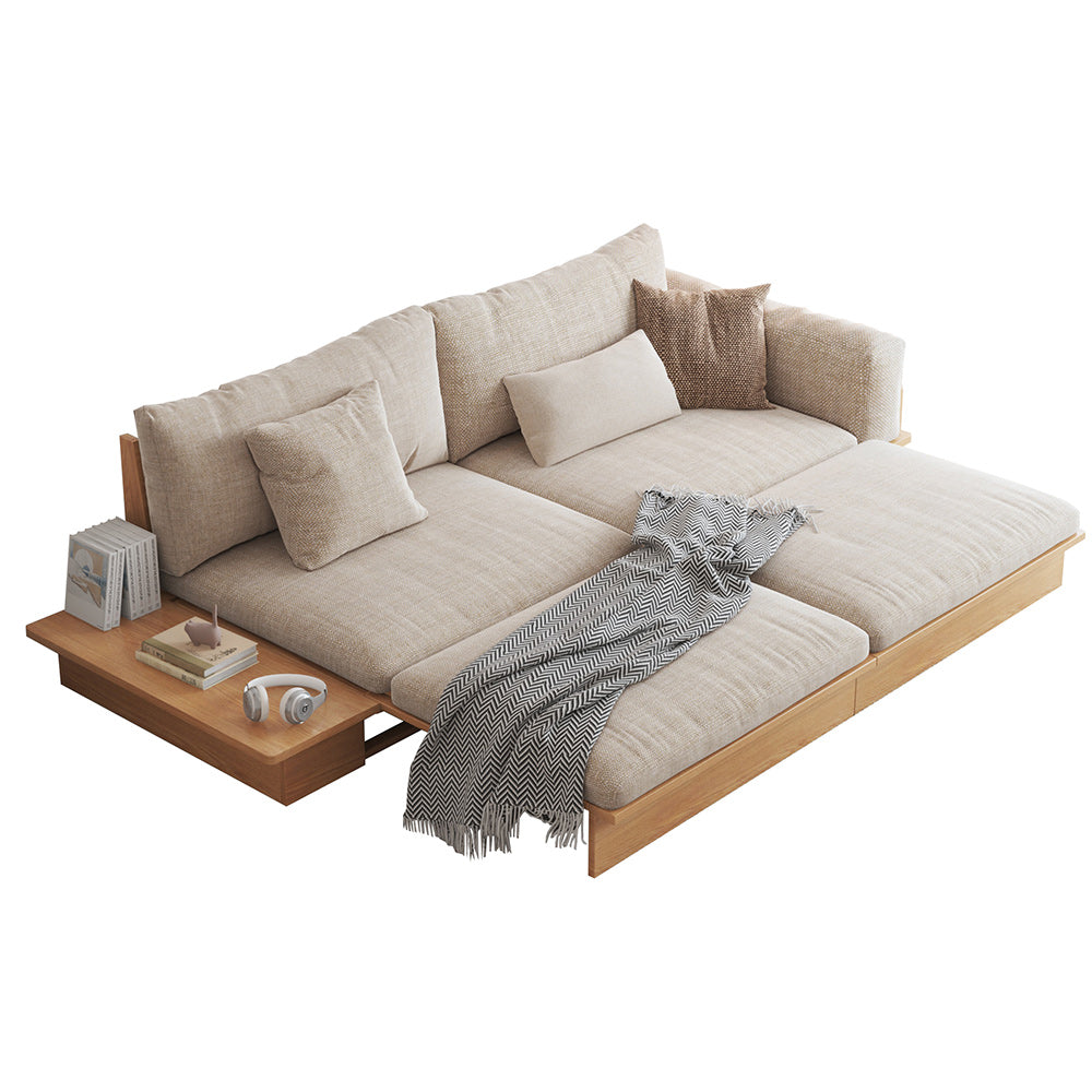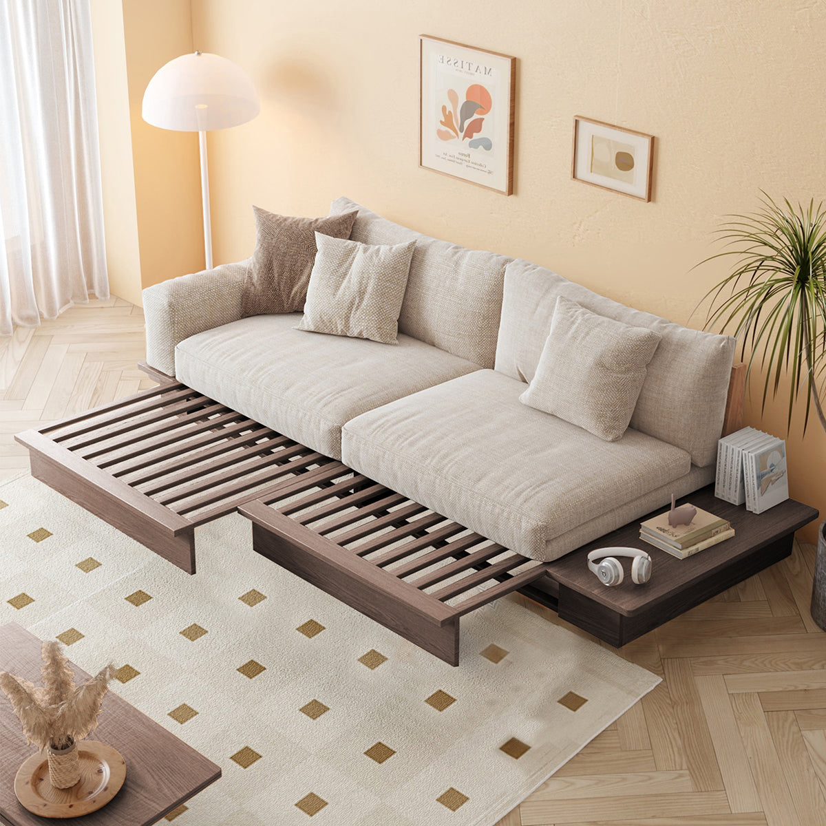 WEHOMZ Modern Solid Wood Beige Folding Sofa Bed – Cotton Linen Upholstery & Reversible Armrest