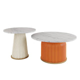 2 Pieces Modern Round Coffee Table Set in White & Red & Gray