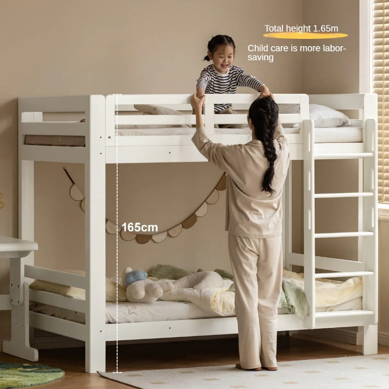 Rubber wood, Beech Solid Wood Children's Bunk Bed Cream Style White.
