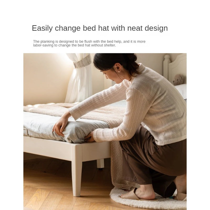 Introduce your child's room to style and comfort with our Rubber Wood Children's Bed in an elegant American cream design. Crafted from 100% pure solid wood, this bed combines sturdy materials, thoughtful design, and child-friendly features to create a safe and cozy sleeping environment.