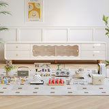 WEHOMZ 86.6'' Media Console TV Stand with Faux Marble Top & Storage - Beige & Black - Beige