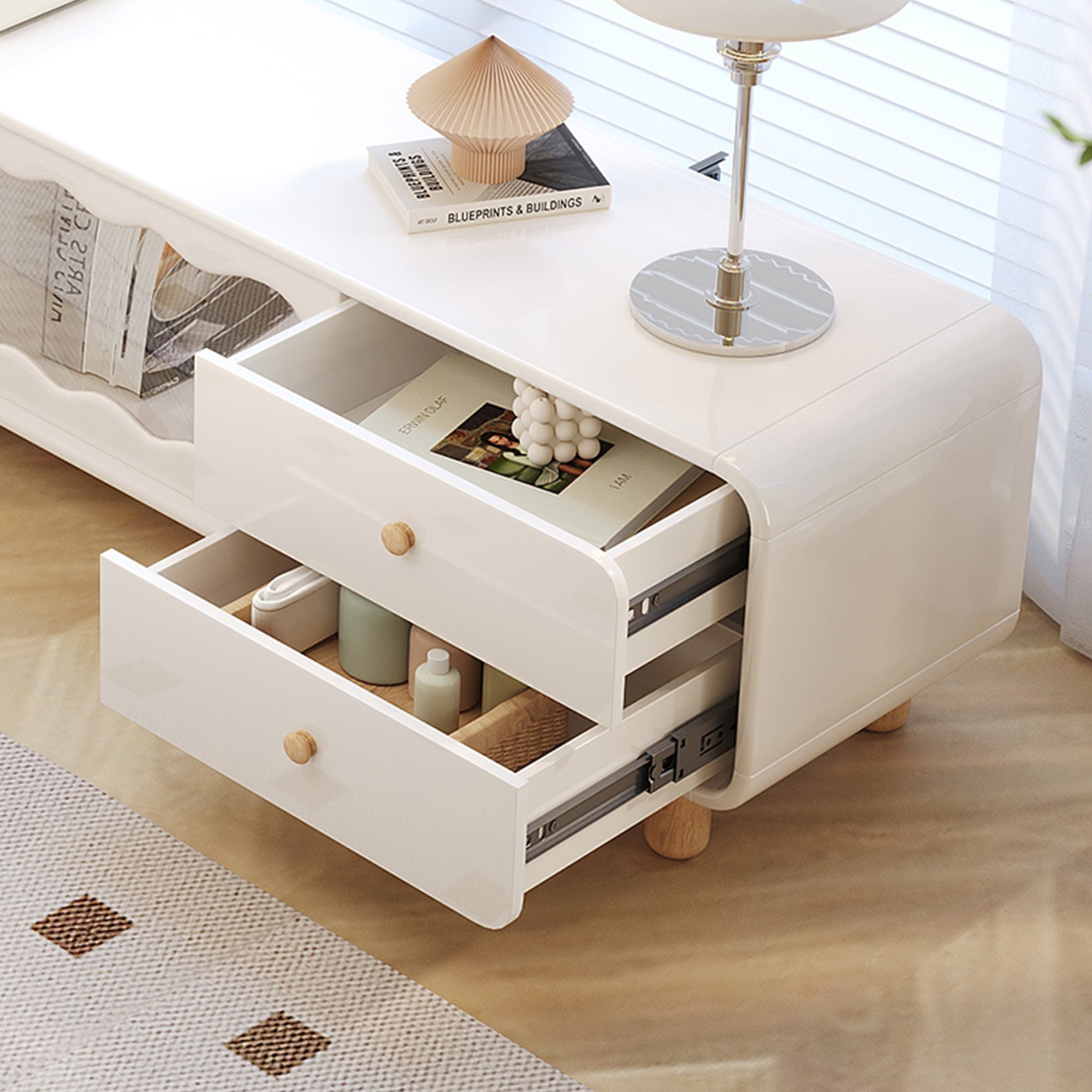 This unit offers a contemporary aesthetic with its subtle color blend and clean design lines, ideal for a modern home setting. It features practical storage solutions including drawers and a shelf, perfect for organizing DVDs, gaming consoles, and other entertainment essentials. The blended colors of cream white and bare wood accentuate your decor, bringing a sophisticated and warm touch to any room.