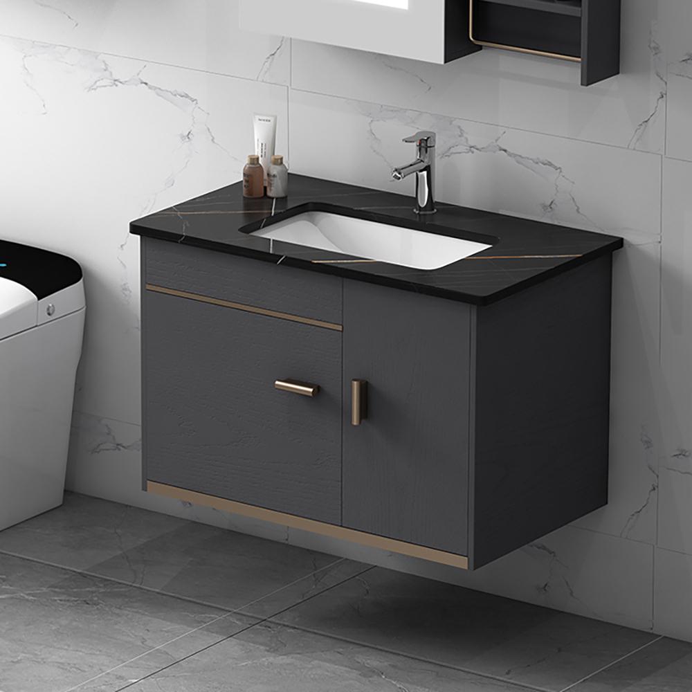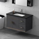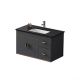 A modern minimalist black floating bathroom cabinet that could provide you the ease of adding space and cleaning the floor. Featuring the smooth stone vanity, it is easy to clean and maintain. The single ceramics under-mount is big enough to meet your face-washing and clothing-washing needs. Boasting a door and a drawer allows ample storage solution for toiletries, shampoos, towels, and other bath essentials, practical and functional.