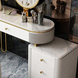 Modern Makeup Vanity Table with Side Cabinet 4 Drawers & Faux Marble Top in White