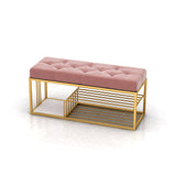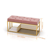 Entryway Bench Pink Velvet Upholstered Ottoman Bench for End of Bed - Pink