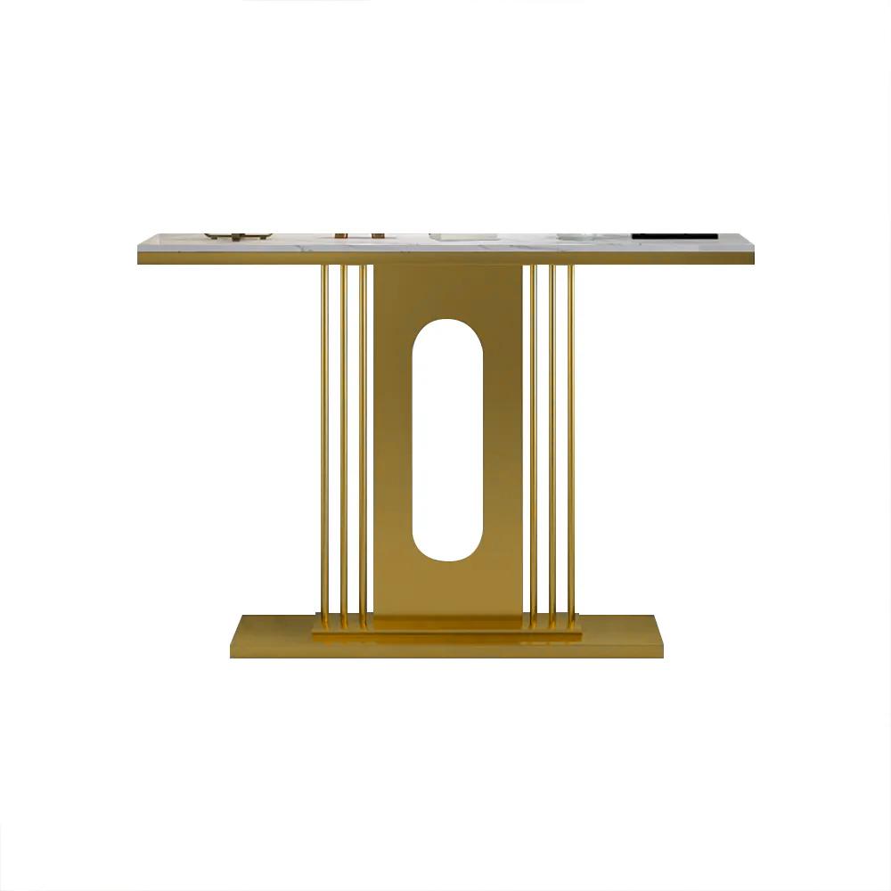 47" Modern Narrow Console Table with Pedestal in White & Gold for Entryway