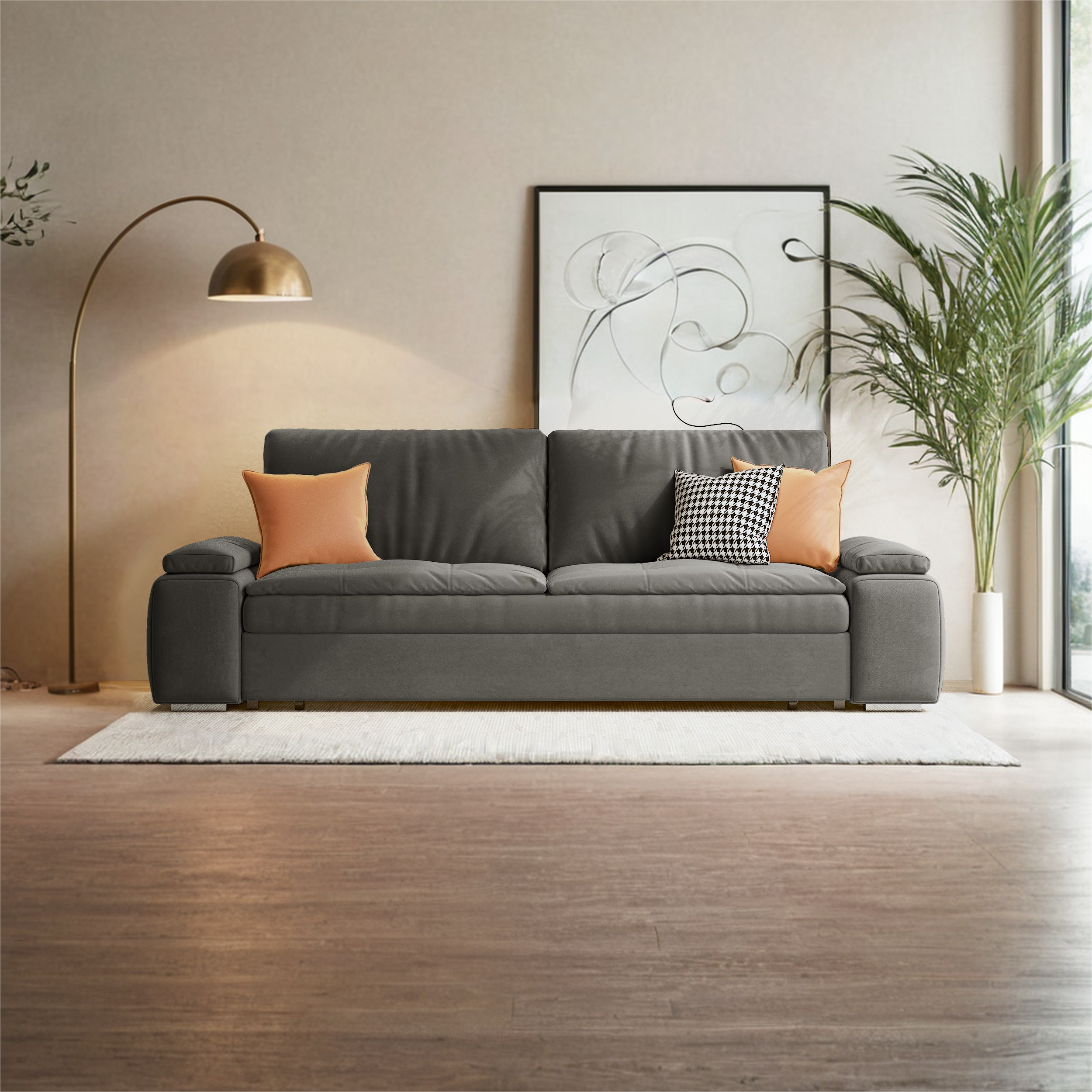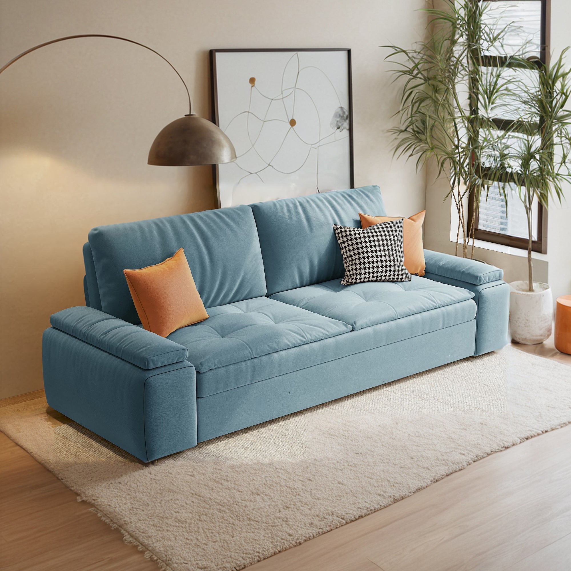 Not only does this sofa bed look stylish, but it also offers unmatched comfort. Crafted with a high-elasticity sponge cushion and enhanced with thickened arm cushions, it provides a soft and supportive seating or sleeping experience. Step-up your home's functionality and aesthetic with this chic yet practical sofa, perfect for those who do not want to compromise on style and comfort.