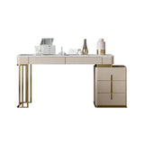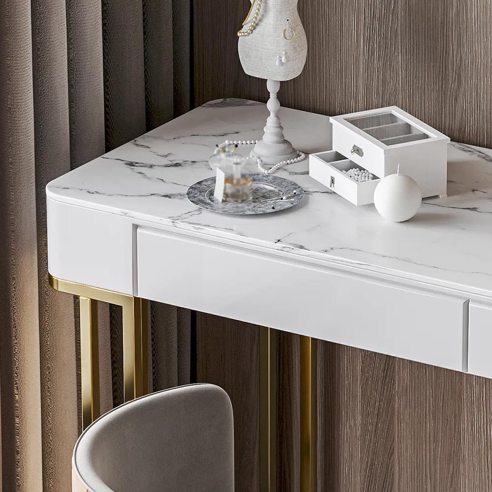 This light luxurious makeup vanity set is a stylish addition to a bedroom or dressing area. In the white finish, the elegant contemporary design features a smooth marble tabletop in a sleek silhouette, with two roomy drawers and additionally a 3-drawer cabinet that provides you ample space to collect your cosmetics and beauty supplies. Made of premium material, this makeup vanity is sturdy in use, and suitable to function as a writing desk for light home office work.