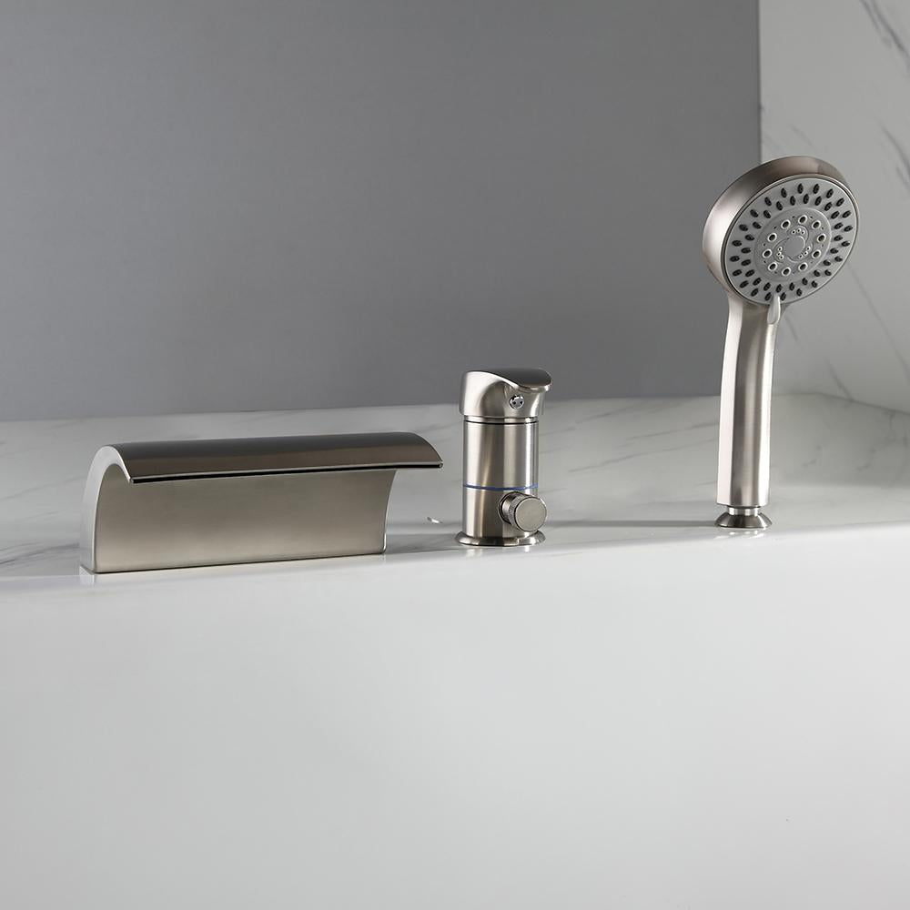 Victoria Deck Mount Waterfall Tub Faucet with Handheld Shower in Brushed Nickel