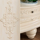 Created for both functionality and impeccable design, the Adame Furniture Collection brings a vintage atmosphere to any space with delicately carved patterns. The outside surface is gracefully adorned with intricate scrollwork and flowers, creating a classic look and adding a vintage, rustic appeal. The triangle top is ideal for supporting decorations or items you need to access often, while drawers and doors accommodate a wide range of storage needs. Plus, four rounded feet provide additional stability and character. Fight against clutter while maintaining ample floor space in your home with this triangle corner cabinet!