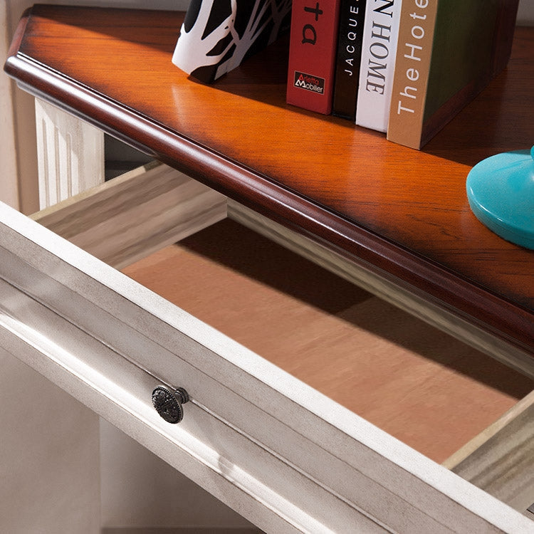 Offer a touch of farmhouse cottage style to your abode with this eye-catching accent cabinet! Made to fill out empty nooks and corners, this accent cabinet does double duty by bringing both chic style and storage space to your abode. Crafted from manufactured wood, its distressed design features a triangular silhouette that makes it more space-saving to fit into any small apartment, while the cast iron handles add a dash of farmhouse charming. Inside, a large cabinet makes room for displaying and storing serve ware or decorative accents. A pull-out drawer offers more spots for books or anything else you want out of sight. Bring organizational appeal and farmhouse style to any space with this accent cabinet.