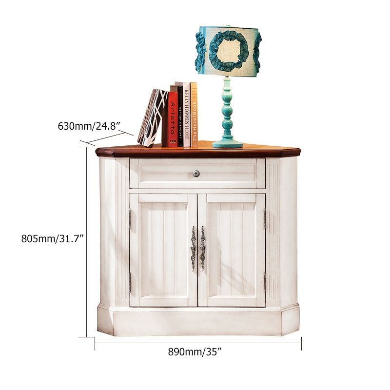 Farmhouse Corner Accent Cabinet Distressed Triangle Cabinet with Doors White