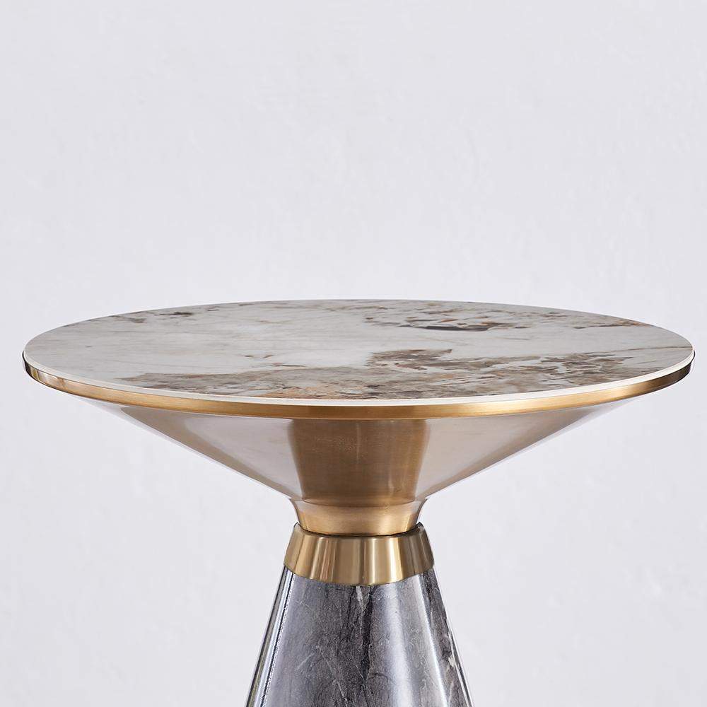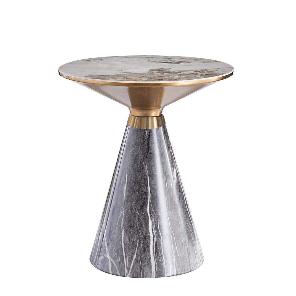 Gray & Gold Hourglass-Shape End Table with Stone Top & Stainless Steel Base